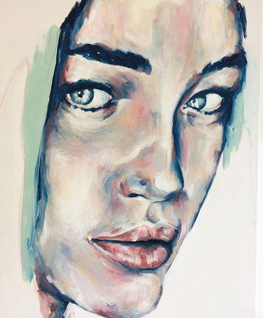 Visage 1, 2019 ©MarieAnglade / Original Oil Painting & Watercolor pen / 55X46